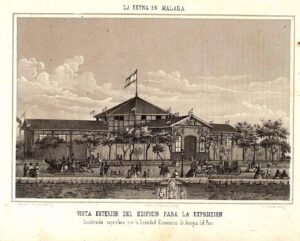 El edificio levantado para la exposición, a la entrada del Paseo de Reding, reunía, según Franquelo, todas las condiciones necesarias para un certamen de tal envergadura. Amplitud, elegancia y una planta octogonal de unos tres mil metros cuadrados, con salones dedicados a la agricultura, la industria y la ganadería. En su salón central, bajo una preciosa cúpula, se exhibían los frutos del país: cereales, pasas y, por supuesto, los vinos.