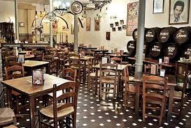 Aquí no hace falta preguntar los nombres. Los barriles de roble, alineados con precisión militar, lucen en sus frentes llamativas cartelas de esmalte blanco que cubren todo el larguísimo fondo del local. Por encima, la pared queda libre para mostrar los recuerdos del pasado. Objetos ennegrecidos y rancios que cuentan, en silencio, la historia de esta taberna situada en uno de los puntos más bulliciosos de la ciudad. Entre la andana de barriles y el público se extiende un mostrador infinito de vieja madera noble, ese lugar perfecto donde dejar reposar la botella o el vaso entre trago y trago, mientras el camarero va anotando las consumiciones a la vista, con sucesivos apuntes de tiza que guarda siempre detrás de la oreja.